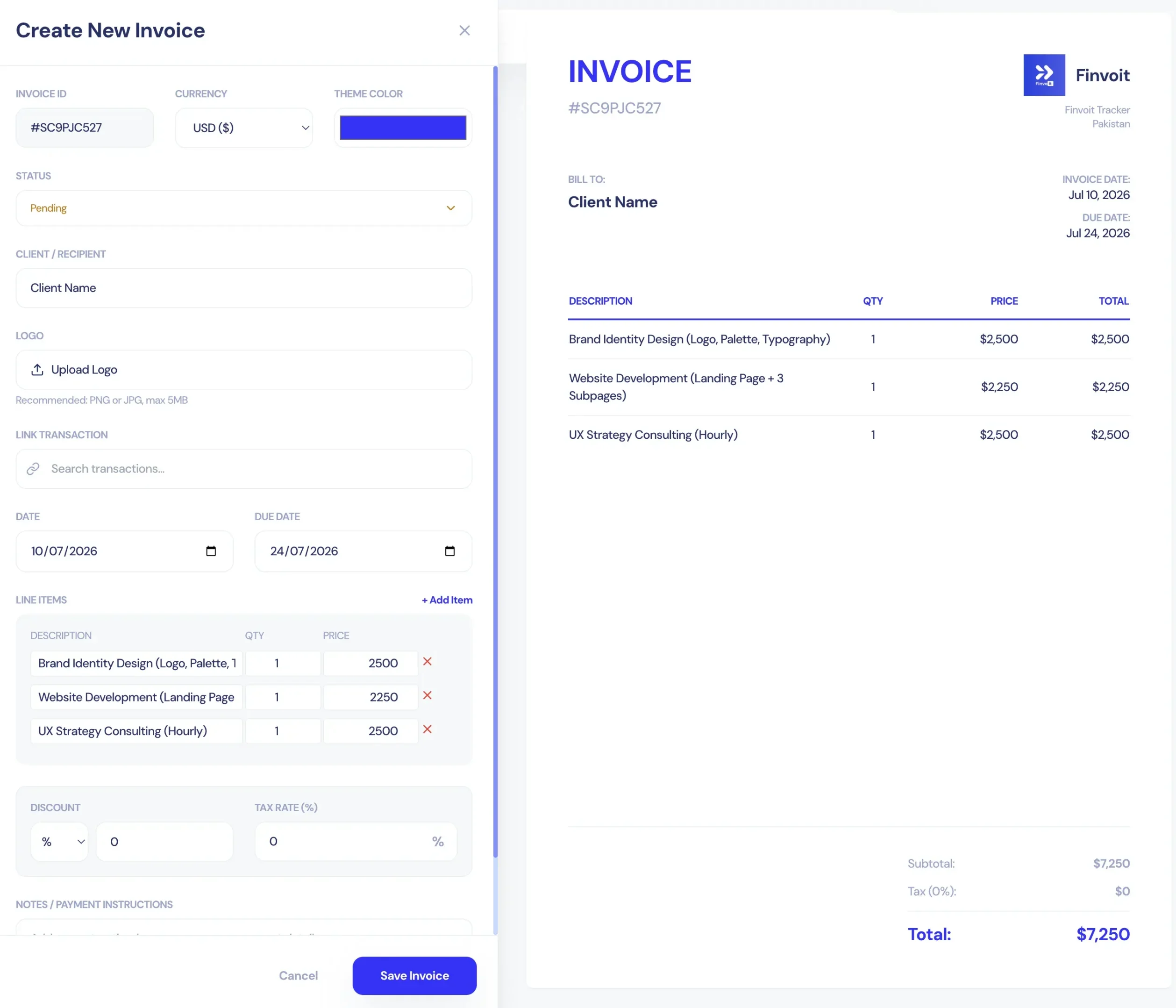 Automatically track paid and pending invoices, so you never miss a payment again.