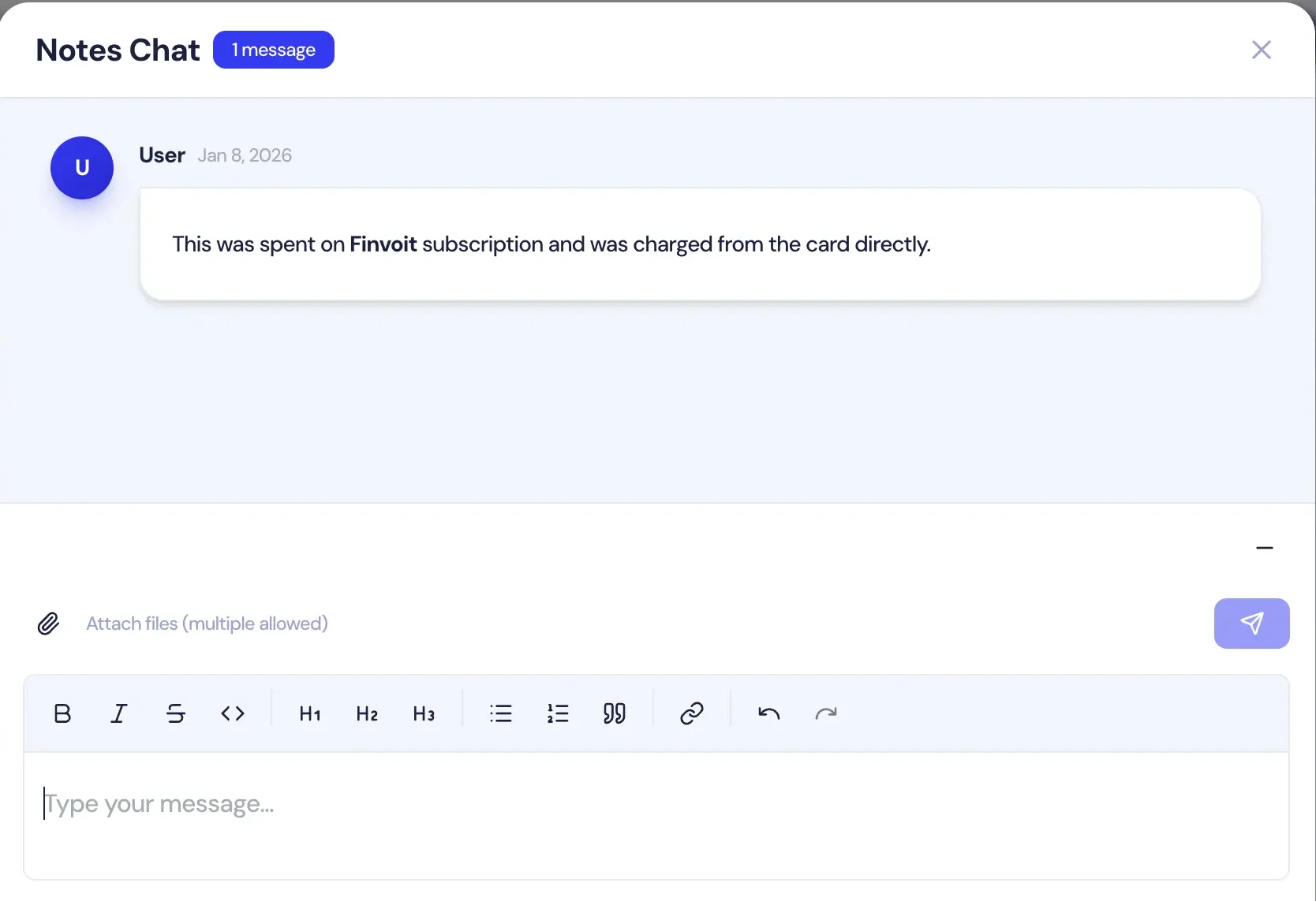You can keep every transaction clear by adding your own notes and uploading invoice images. This helps you record important details and makes reviewing transactions super easy later on.